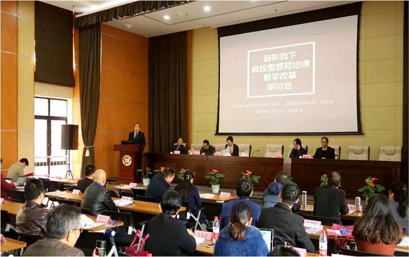 20171125日,学校在行政楼330会议室召开“新形势下高校思想政治理论课教学改革研讨会”。会议由校长胡晟致辞,副校长杨若凡主持,来自复旦大学、同济大学、华东师范大学、上海海洋大学、上海海事大学、上海第二工业大学、上海电力学院、上海政法学院、上海商学院、上海健康医学院、上海立信会计金融学院、上海体育学院、上海建桥学院等高校的专家学者参加研讨。会议由我校yL23411永利官网登录主办承办,华东师范大学政治学系《思想政治课研究》杂志协办。上海市教委德育中心副主任宗爱东、上海思政研究会秘书长卢天琳、我校教务处长刘军、yL23411永利官网登录院长何小刚、yL23411永利官网登录直属党支部书记顾建伟出席会议,yL23411永利官网登录全体教师参加会议。