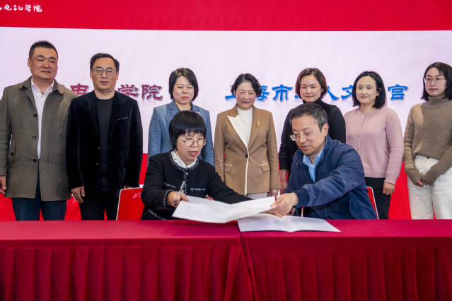上海电机学院yL23411永利官网登录主持工作副院长范冬姣,上海市工人文化宫党委委员、工会主席,办公室主任、文体部部长刘骏,代表双方共同签署了“大思政课”合作共建协议。双方围绕师资共享、课程合作、思政教育与实践结合,以及共建模式等作了深入探讨。